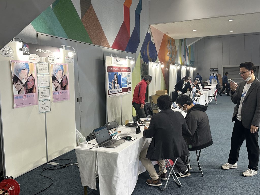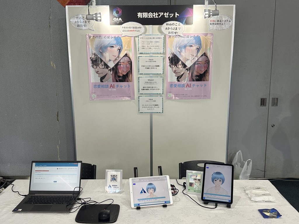弊社ブースでは、登録者数15,000人を突破した「恋愛相談AIチャット」をはじめ、当社の事業内容をご紹介いたしました。